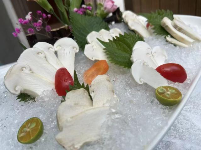 松茸的吃法有很多種。比較原生態(tài)、能品嘗到松茸原汁原味的吃法是“生食”,像吃刺身一樣,把松茸洗凈切片,再根據(jù)個人口味配上鹽、芥末等調(diào)料。