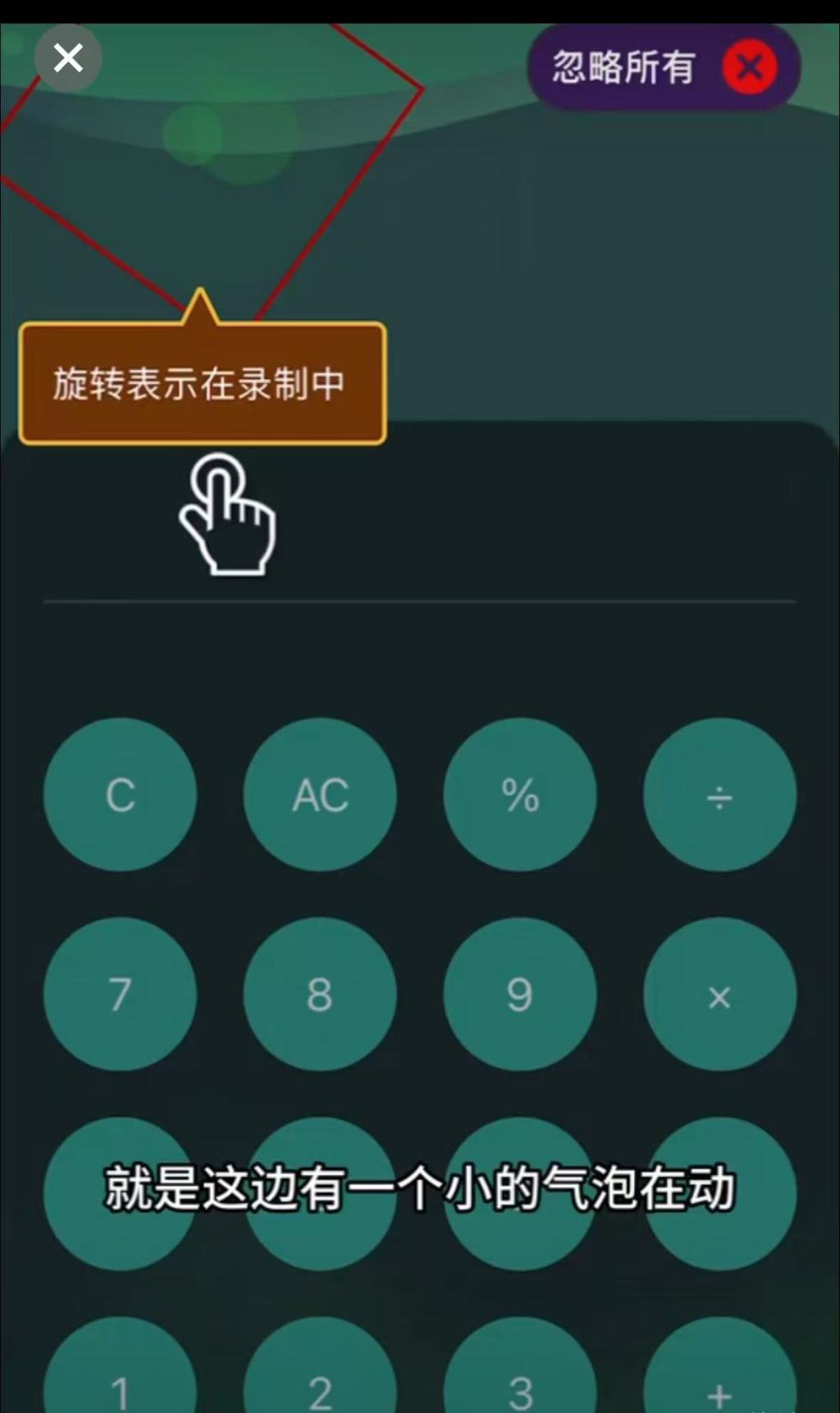 記者點(diǎn)擊 APP 啟動(dòng)設(shè)置中的“啟動(dòng)應(yīng)用偽裝”功能,發(fā)現(xiàn)可將該 APP 換成計(jì)算器等其他應(yīng)用的“外皮”。比如啟動(dòng)“計(jì)算器”后,頁面顯示的即為計(jì)算器,但此時(shí)一鍵錄影已啟動(dòng)——頁面上方,有一個(gè)綠色的動(dòng)態(tài)氣泡,頁面解說顯示,“旋轉(zhuǎn)表示正在錄制中”。