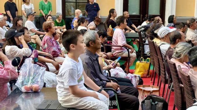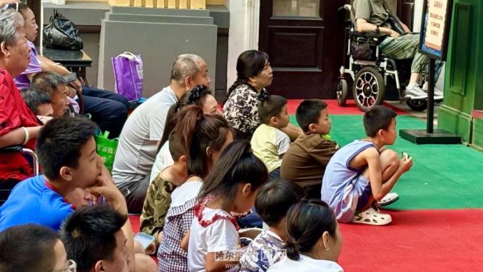 “就跟我小時候大家湊一塊兒看電影兒,一模一樣!”7月30日晚,天色漸暗,從城市各處趕來的市民,把哈爾濱市工人文化宮職工文化廣場的院子擠得滿滿當當。71歲的朱鳳琴一邊專注地看著老電影《小兵張嘎》,一邊拉著孫子的手,激動地向記者感慨。夜色中,露天銀幕上跳動的黑白光影,照亮了現(xiàn)場150多名觀眾的臉龐。