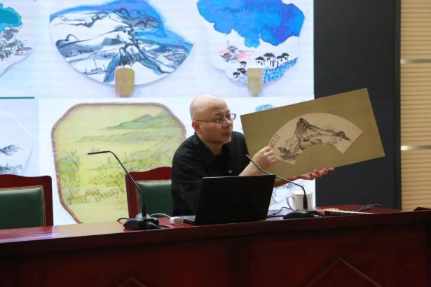 葉教授的講座一開始就引人入勝。他展示了珍藏的民國名家扇面,紙本上的筆墨鮮活如初;自己近期的新作亮相時,墨色里的氣韻順著扇骨緩緩流淌。實物在眼前流轉的瞬間,所有人都被這方寸之間的意境深深吸引,連呼吸都不自覺地放輕了。