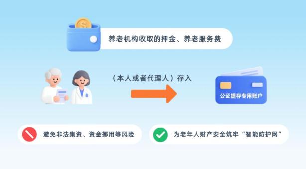 其一,構建全鏈條資金監(jiān)管閉環(huán),守護好養(yǎng)老“錢袋子”。針對養(yǎng)老機構預付費風險,建立“公證提存 + 資金監(jiān)管”協(xié)同機制。區(qū)司法局會同區(qū)民政局簽署《關于開展養(yǎng)老領域“公證提存”預收費監(jiān)管工作的合作框架協(xié)議》,將養(yǎng)老機構收取的押金、養(yǎng)老服務費等納入公證提存監(jiān)管范圍。所有監(jiān)管資金由老年人或其代理人直接存入“公證提存專用賬戶”,并借助“養(yǎng)老預付費資金監(jiān)管平臺”實現(xiàn)資金在線監(jiān)管,有效防范非法集資、資金挪用等風險,為老年人財產安全打造“智能防護網(wǎng)”。