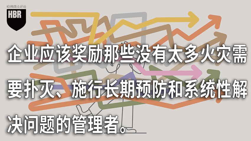 不要獎勵滅火行為。在大多數(shù)美國企業(yè)中,英雄是那些撲滅最大火災的人。但是,問題開始時,這些英雄在哪里?為什么他們不在問題變得嚴重之前更快地介入?企業(yè)應該獎勵那些沒有太多火災需要撲滅、實施長期預防和系統(tǒng)性解決問題的管理者。