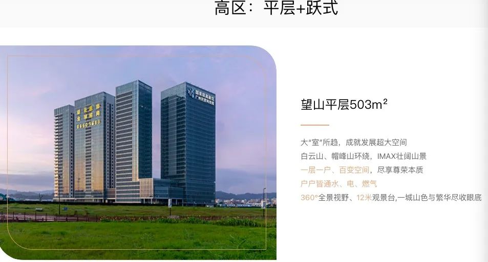 有意思的是,益云科創(chuàng)中心高區(qū)被打造為平層和躍式產(chǎn)品,能眺望白云山,每戶通水、電、燃?xì)?,可作為超級居住類產(chǎn)品。