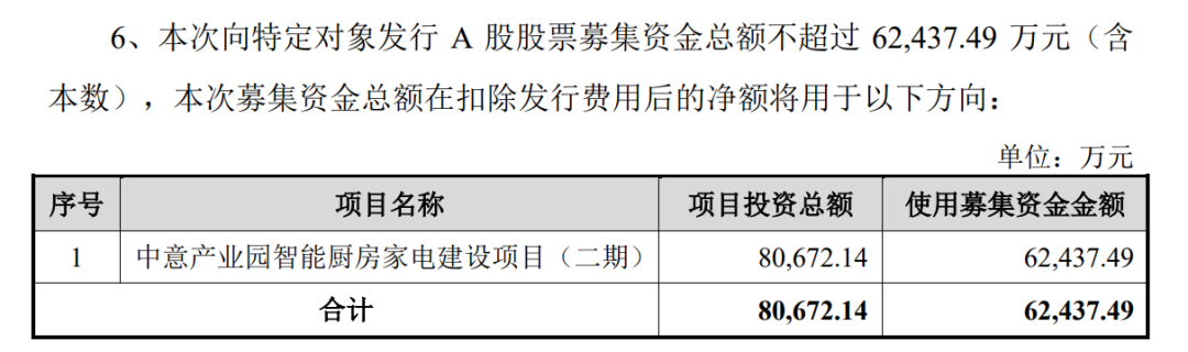 同日,比依股份發(fā)布《向特定對(duì)象發(fā)行股票證券募集說明書(申報(bào)稿)》,擬向不超35名特定投資者定向增發(fā),募資不超6.24億元,用于中意產(chǎn)業(yè)園智能廚房家電建設(shè)項(xiàng)目(二期)。