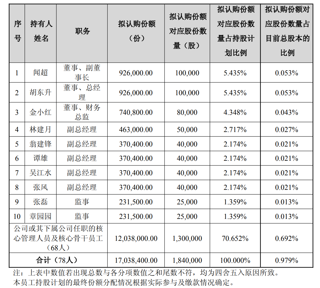 圖片說明:比依股份員工持股計(jì)劃授予名單,數(shù)據(jù)來源于公司公告