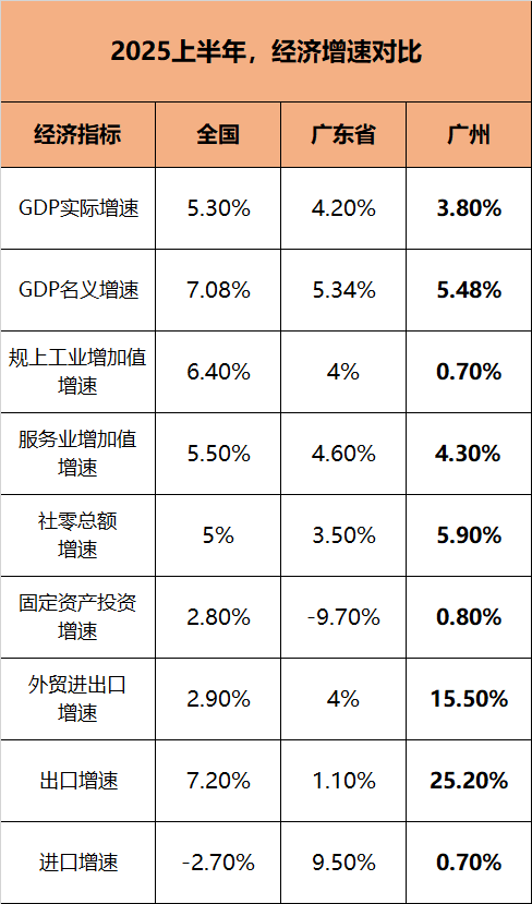 在外貿(mào)方面,廣州上半年出口同比大幅增長(zhǎng)25.2%,創(chuàng)同期歷史新高。雖然存在搶出口搶轉(zhuǎn)口因素,但也體現(xiàn)了外貿(mào)的韌性。