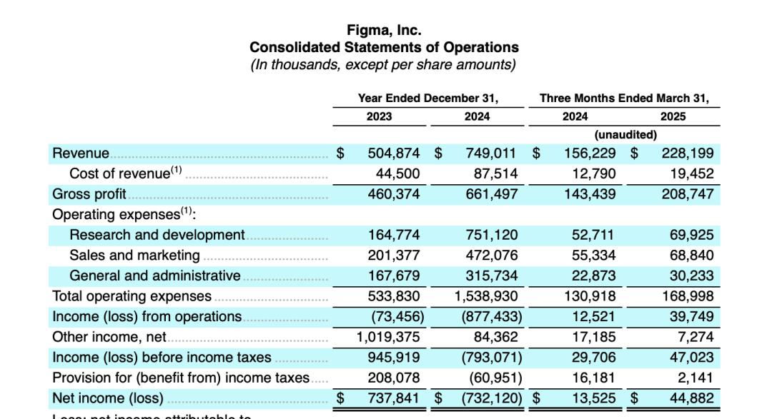 營收表現(xiàn)出色。招股書顯示,2024年公司營收7.49億美元,同比增長48%。2025年第一季度,營收2.28億美元,同比增長46%,凈利潤4490萬美元。照此發(fā)展,F(xiàn)igma今年?duì)I收有望突破10億美元。截至2025年3月,F(xiàn)igma有1031家年付費(fèi)超10萬美元的大客戶,同比增長47%,客戶包括Netflix、Duolingo、Stripe等一線科技公司。