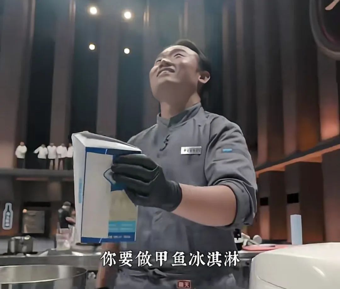 《一飯封神》里的創(chuàng)新菜讓人驚嘆,如甲魚(yú)冰淇淋、豬腦花蛋白慕斯等。甲魚(yú)裙邊做成冰淇淋類(lèi)似魚(yú)凍口感,讓人想起《中華小當(dāng)家》里的“彈跳甲魚(yú)湯”。