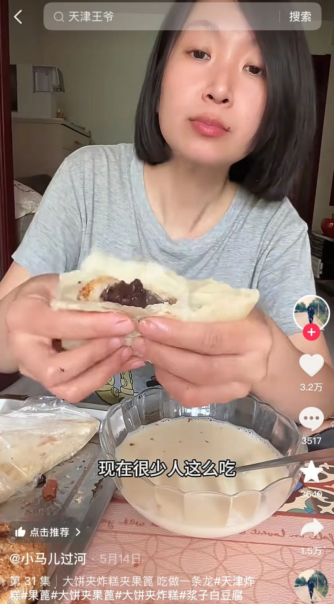 與“團(tuán)團(tuán)記”并肩的天津碳水教母“小馬兒過(guò)河”,教榮叔吃炸糕會(huì)有一套獨(dú)特方法,如先白嘴吃、再搭配大餅夾果篦和咸豆?jié){等。華北美食多是“碳水開(kāi)會(huì)”,但即使是碳水疊加,也要吃出風(fēng)雅,體會(huì)其中微妙差別。