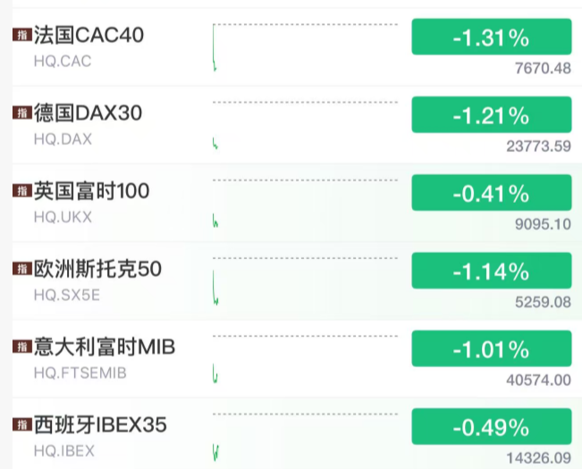 8月1日午后,歐洲股市開盤集體大跌,大部分歐洲國家股市均跌超1%。