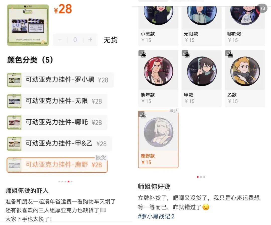 值得一提的是,在所有聯(lián)動周邊產(chǎn)品中,帶有師姐鹿野形象的周邊最受歡迎。《羅小黑戰(zhàn)記2》上映后,角色人氣出現(xiàn)差距,鹿野超高的人氣帶動了周邊銷售,單人周邊率先賣斷貨,這在動畫電影中女角色人氣和銷量斷層的情況較為少見。