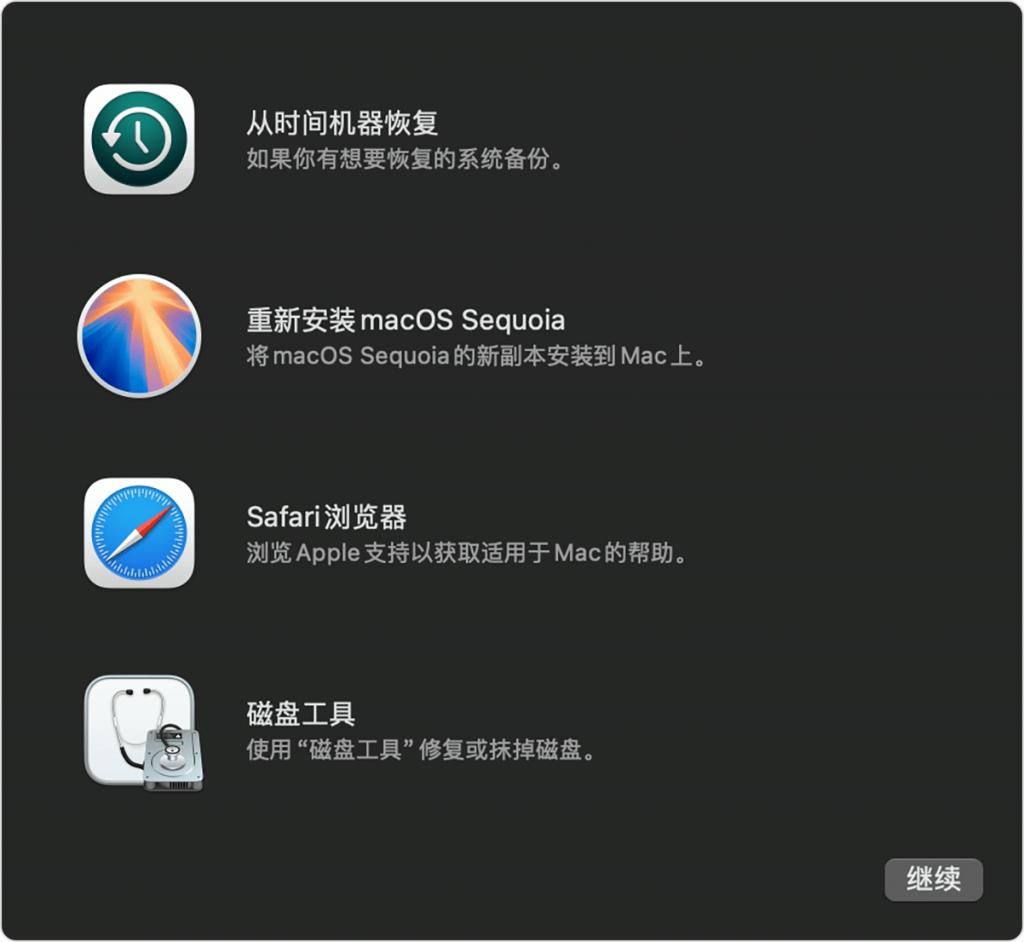 - Mac:設(shè)備進入恢復模式,格式化硬盤后可下載macOS Sequoia并安裝。