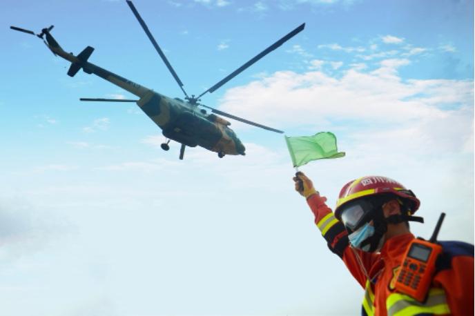 直升機刺破云層,火焰藍揮舞信號旗精準指引,橄欖綠在機艙就緒接應。空地之間,綠與藍默契聯動,讓救援“飛”得更快、落得更準,織就空中生命網。