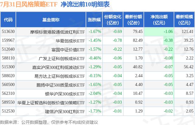 7月31日風(fēng)格策略ETF資金流向情況:凈流入8.33億元