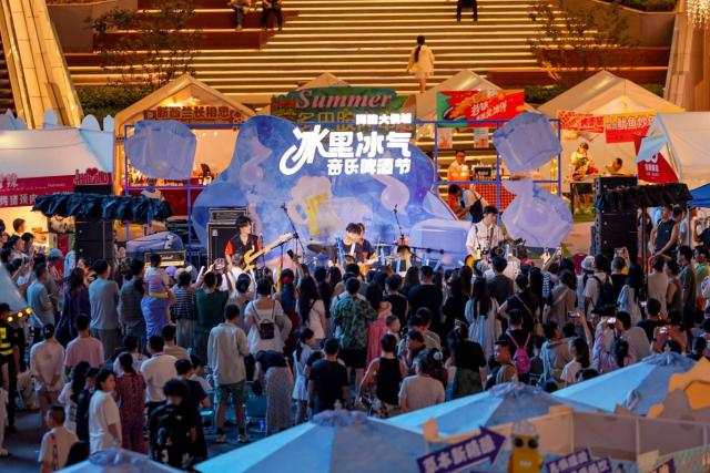 即日起至 8 月 31 日,海淀大悅城在音樂廣場(chǎng)舉辦了"冰里冰氣"音樂啤酒節(jié)??。藍(lán)白搭配作為主色調(diào),有 10+ 啤酒美食攤位,還有廠牌音樂節(jié)、夜娛公開賽綜藝游戲較量、Galli 戲劇演出、"涼"好青年食力較量賽等 24 場(chǎng)表演活動(dòng)。每周六有超棒的音樂現(xiàn)場(chǎng)??,自 7 月 21 日起每周日都有露天電影放映,邀你品鑒沁爽精釀的同時(shí),帶你快樂一"夏"、開心一"夏"!
