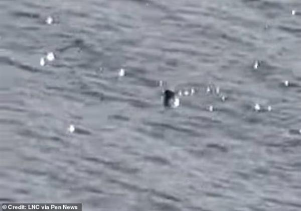 視頻里,有一個(gè)黑色物體在水面上下浮動(dòng),仿佛在游動(dòng)。不過,可能由于距離較遠(yuǎn),視頻畫質(zhì)很差,具體情況難以看清。