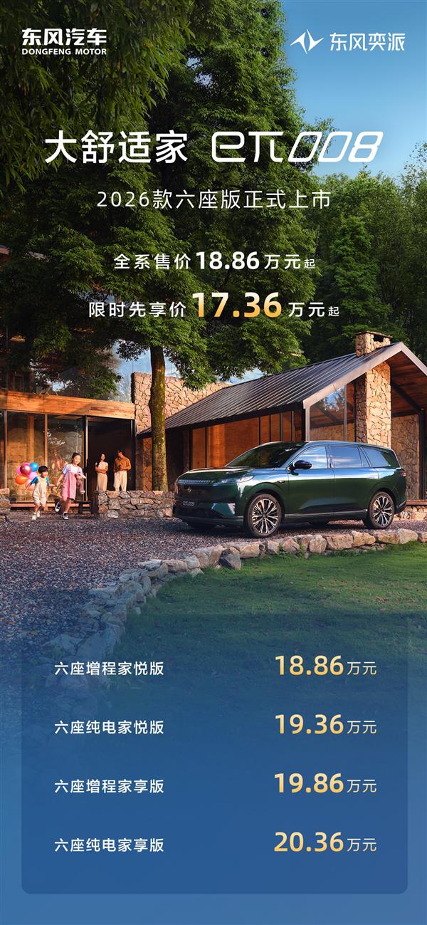 快科技8月2日消息,昨晚,東風(fēng)奕派科技旗下2026款e π 008六座版正式上市,限時(shí)售價(jià)17.36 - 19.06萬(wàn)元。此次改款新車(chē)進(jìn)行了多項(xiàng)升級(jí),官方宣稱(chēng)多達(dá)108多項(xiàng)。