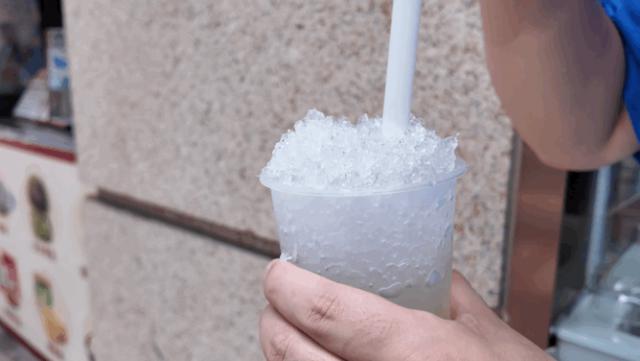 一直以來,沈大成的刨冰用料扎實、做法經(jīng)典,深受顧客喜愛。拿到刨冰后,先把頂上的刨冰往下戳一戳,這樣既能讓冰體快速融化,又能感受夏日獨有的快樂。
