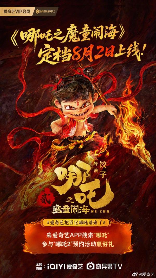 快科技8月2日消息,電影《哪吒之魔童鬧?!罚ā赌倪?》)將于今天上午10:00全網(wǎng)上線,騰訊視頻、愛奇藝、優(yōu)酷等視頻平臺同步上線。