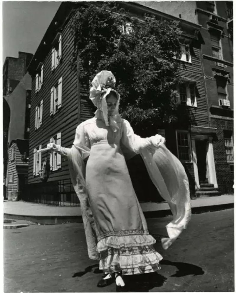米勒說,坎寧安本人或許也認(rèn)為紐約歷史博物館是合適的展示平臺(tái)。幾年前,他曾將部分紀(jì)念品捐贈(zèng)給博物館。2014年舉辦的“立面”(Facades)展覽,展出了他的攝影散文,展現(xiàn)了模特身著時(shí)代服飾在歷史場(chǎng)景中擺造型的畫面。