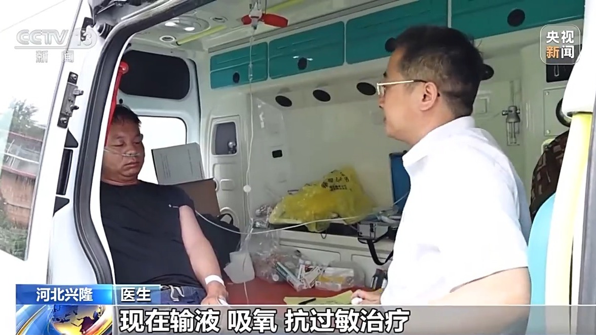 醫(yī)生表示:指揮部接到通知后,立刻派人前往救援。通過對(duì)癥用藥搶救,進(jìn)行輸液、吸氧、抗過敏治療,目前患者的情況正在逐漸好轉(zhuǎn)。