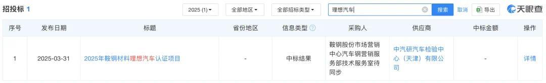 今年3月,中國(guó)汽研有一條關(guān)于理想汽車的招投標(biāo)項(xiàng)目。