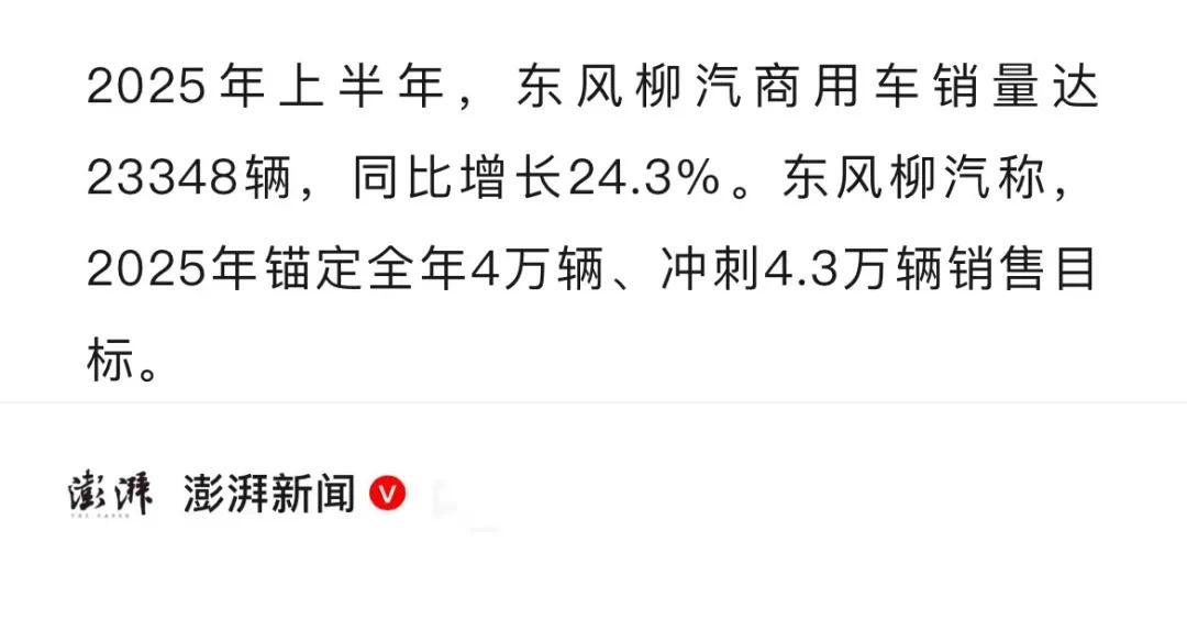 據(jù)報(bào)道,2025年上半年,東風(fēng)柳汽商用車銷量達(dá)23348輛。