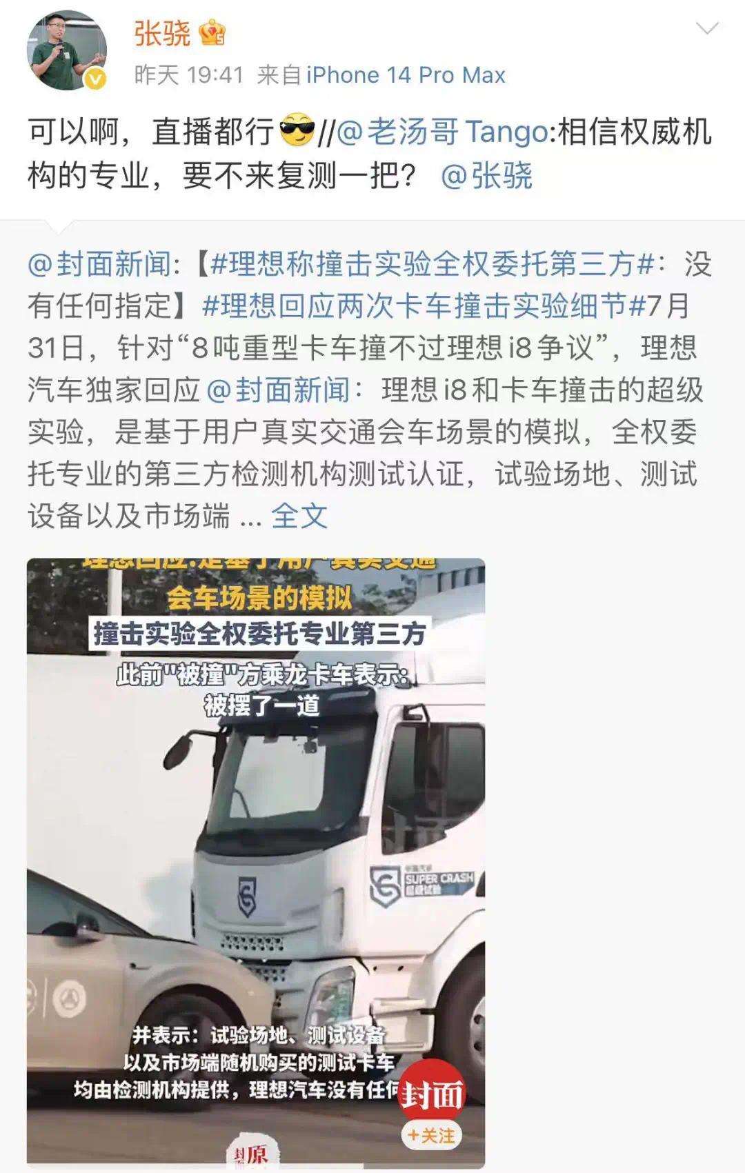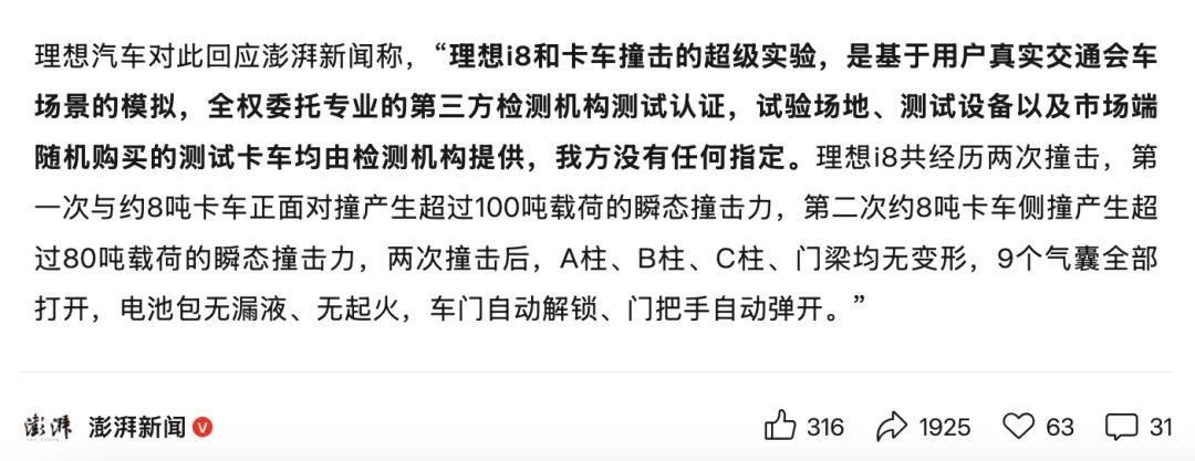 理想i8對(duì)撞測(cè)試引風(fēng)波,高管邀復(fù)測(cè)直播