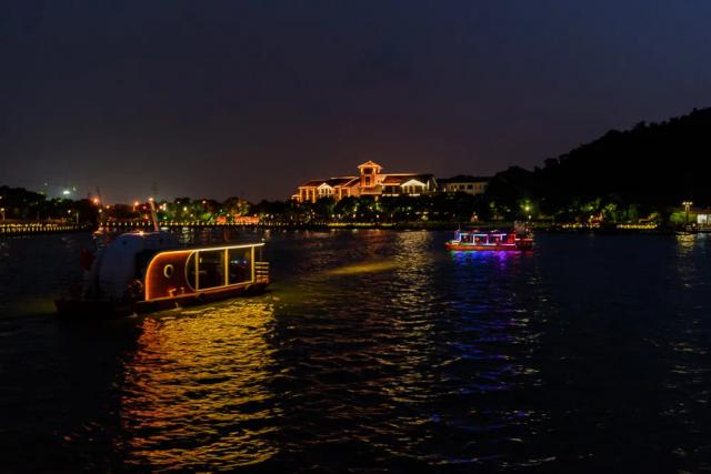 “尋舟宋韻”航線,是駛向這千年文脈的輕舟。夜航時(shí)分,靜謐無(wú)聲,小普陀“水上觀音”的燈光投影如夢(mèng)似幻,將王安石筆下“月色湖光共一樓”的意境,化為眼前流淌的詩(shī)篇。槳聲搖碎星光,引領(lǐng)游客沉浸于宋代的風(fēng)雅長(zhǎng)卷之中。
