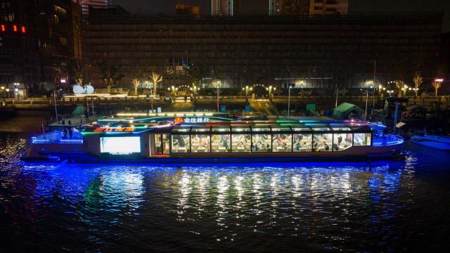 夜幕降臨,“映舟三江”航線點(diǎn)亮了這幅城市核心畫(huà)卷。老外灘的歐式建筑在燈光映照下,宛如琥珀中的標(biāo)本;天主教堂的尖頂,仿佛能銳利地劃破沉沉夜色。