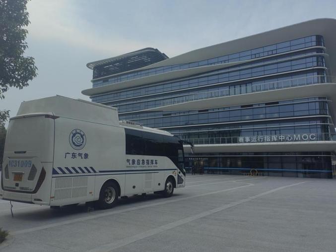 8月1日,氣象應(yīng)急指揮車在廣東奧林匹克體育中心賽事運行指揮中心參與保障演練。攝影:曾凡敏