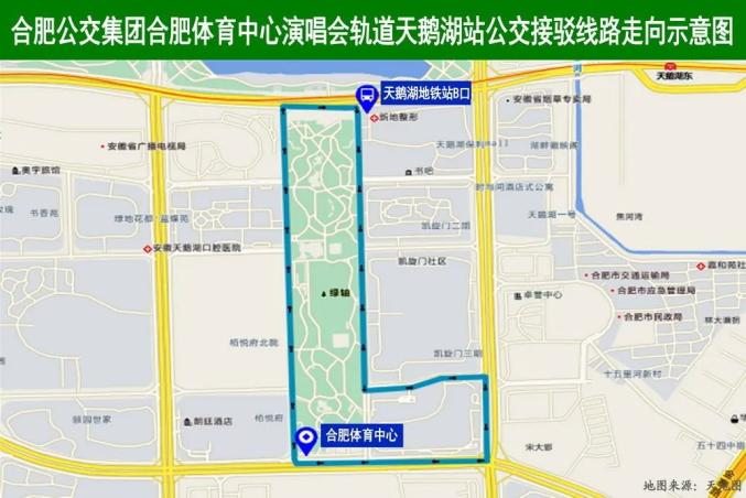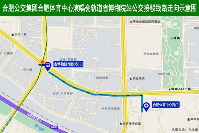 合肥南站至合肥體育中心演唱會(huì)公交定制專(zhuān)線走向示意圖
