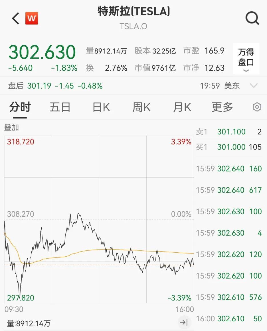 特斯拉股價8月1日下跌1.83%,收于302.63美元/股。今年以來,特斯拉累計跌幅達(dá)25.06%,在美股大型科技公司中跌幅居前。