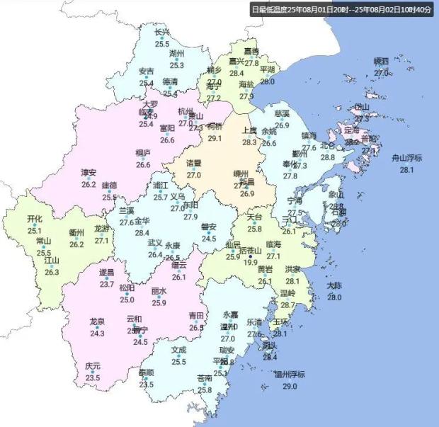 氣溫方面,今天的起始?xì)鉁鼐捅容^高,浙江省大部分地區(qū)在25 - 28℃之間,其中柯橋達(dá)到29.1℃,清晨就有悶熱的感覺。預(yù)計(jì)今日浙西北和沿海地區(qū)最高氣溫為34 - 36℃,其他地區(qū)為36 - 38℃。