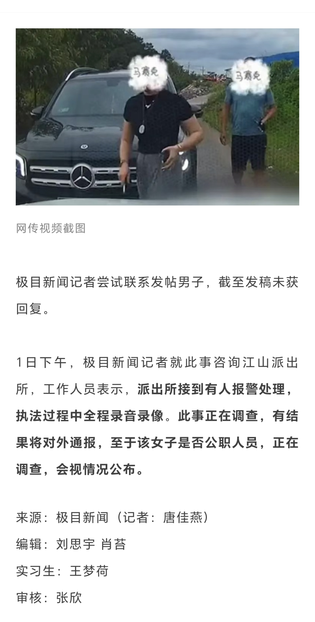 另一次是8月1日下午,廣西防城港市公安局江山邊境派出所就“奔馳女司機(jī)亮證逼迫讓路”事件回答極目新聞采訪。