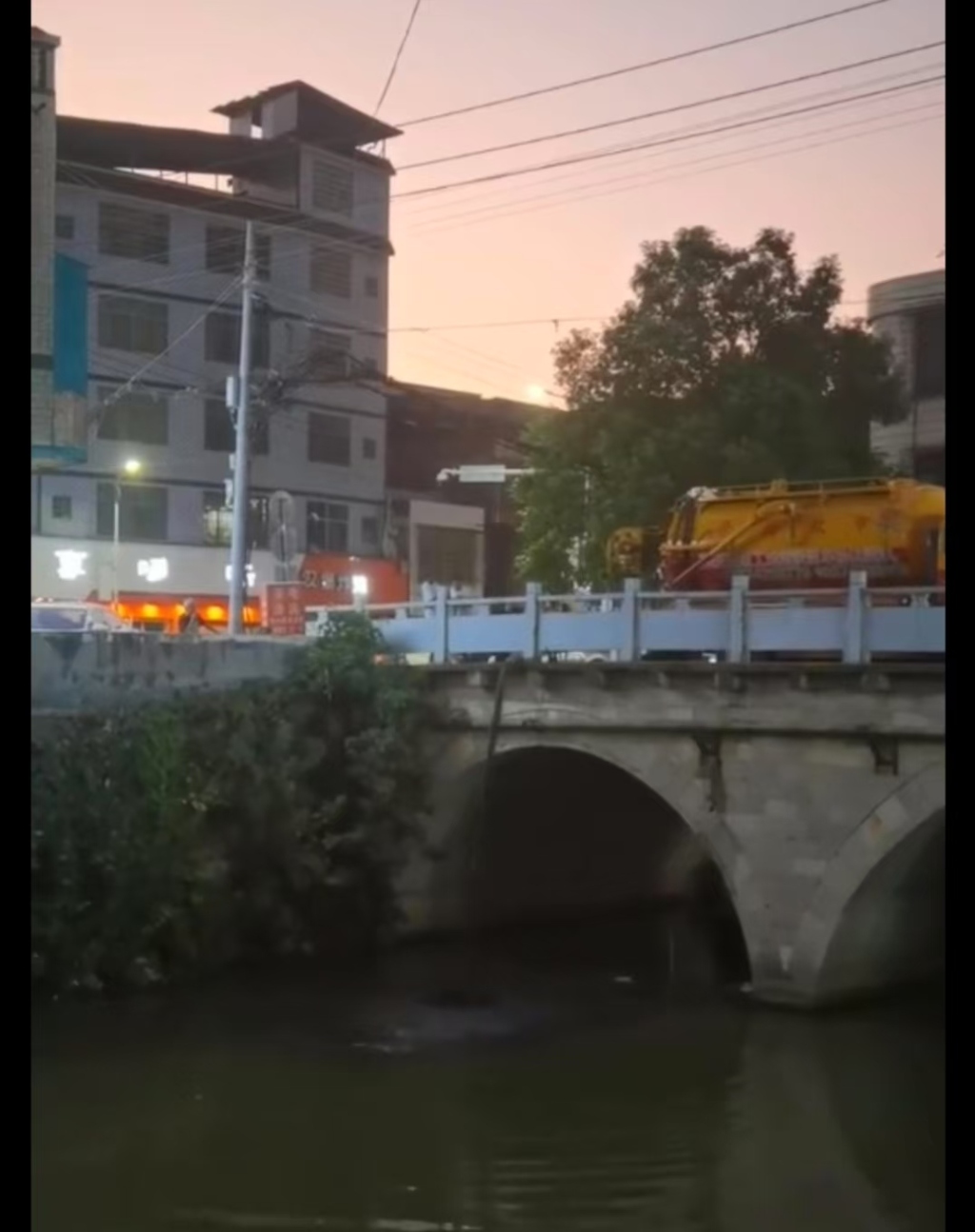 澎湃新聞?dòng)浾邚囊曨l中看到,一輛車身標(biāo)有“市政搶修”字樣的車輛停在橋上,黑色污水通過車輛管道從橋面直接流入河中,視頻配文描述“現(xiàn)場(chǎng)臭氣熏天”。此情況引起網(wǎng)友關(guān)注,有網(wǎng)友評(píng)論指出,市政搶修車本應(yīng)維護(hù)城市市容環(huán)境,卻向鎮(zhèn)中心河流排放污水,這種行為很不合適。