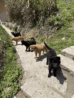 還沒進(jìn)村,先聽到聲音。村口的“汪汪隊(duì)”早就集合好了,搖著小尾巴圍了上來,好像在問:“嗨你好……你是誰來著?”
