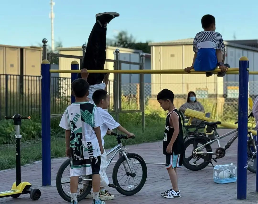 除了各類比賽,跑步、騎行等日常運(yùn)動(dòng)也逐漸融入市民的生活?;袅趾优蟽砂兜牡缆烦闪耸忻竦摹熬G色健身房”。有人沿著河岸跑步,有人在道路上騎行。騎行愛好者趙澤明把這里當(dāng)成“通勤路”,笑著說:“既能省油錢,又能控制體重!”傍晚時(shí)分,小區(qū)里熱鬧起來,孩子們的嬉笑打鬧聲與家長們?cè)诘帕ζ?、單杠上鍛煉的身影交織在一起,奏響了健康生活的樂章。馬路上展現(xiàn)著城市的活力,小區(qū)器械區(qū)則成了家門口的“健康堡壘”。