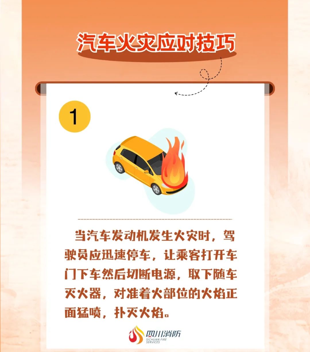 如遇汽車意外起火,我們該如何避險呢?下面這份安全提示請收好。
