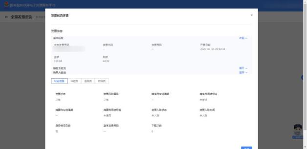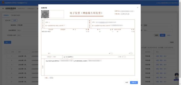 點(diǎn)擊“預(yù)覽”鏈接,彈出發(fā)票票面信息。