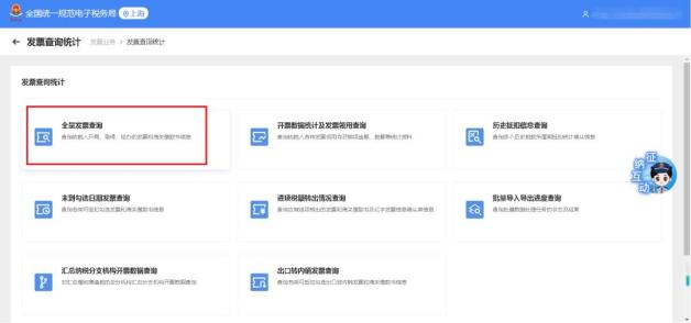 登錄電子稅務(wù)局,依次點(diǎn)擊【我要辦稅】-【稅務(wù)數(shù)字賬戶】-【發(fā)票業(yè)務(wù)】-【發(fā)票查詢統(tǒng)計(jì)】-【全量發(fā)票查詢】。
