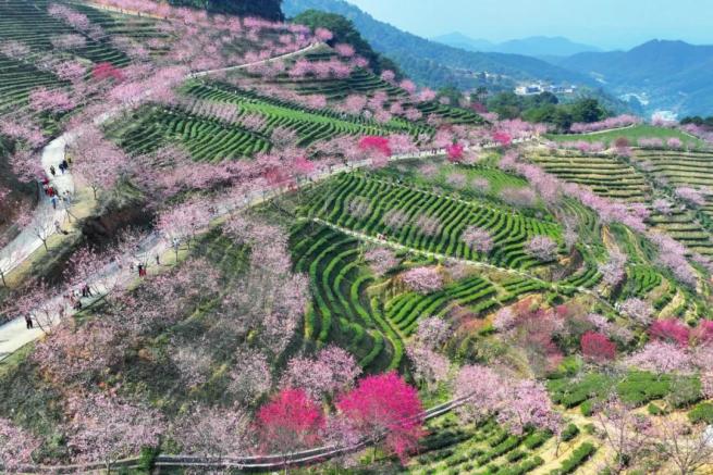 陰那村抓住綠美生態(tài)建設的契機,打造出茶櫻輝映的網紅景觀帶,成為遠近聞名的文旅“IP”。(高訊 攝)