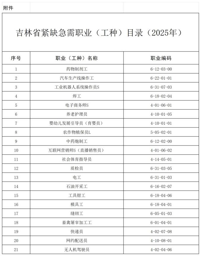 關(guān)于印發(fā)《吉林省緊缺急需職業(yè)(工種)目錄(2025年)》的通知