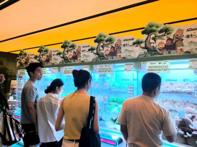 記者看到,從美羅城 5 樓到 6 樓,“浪浪山”主題“痛城”景色不斷變化。SFC 上影 BOE - α 超級(jí)影城入口處的聯(lián)和萬物旗艦店內(nèi)人氣旺盛,300 余款浪浪山聯(lián)名周邊全面上新,小豬妖毛絨公仔成為線下“銷冠”;問童子聯(lián)名玩偶限時(shí)特展區(qū)的爆款玩偶多次售罄,吸引粉絲體驗(yàn)。在“浪浪山取經(jīng)約稿”手繪工坊,影迷們看完電影后不僅融入電影,還能用畫筆續(xù)寫故事。同時(shí),SFC 上影影城抖音直播間進(jìn)行實(shí)景直播,線上派發(fā)全國通用特惠通兌票,探索電影撬動(dòng)線下經(jīng)濟(jì)的新邊界。