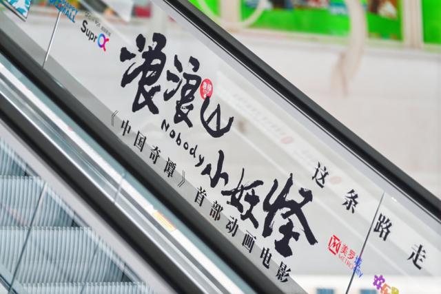 戶外,商城球幕上的“小豬妖”頭像和“這條路走對(duì)了”的電影臺(tái)詞十分吸睛,引得路人駐足觀看。從地鐵徐家匯站到商場的連廊內(nèi),“浪浪山”主題燈箱不斷映入眼簾,像路標(biāo)一樣指引人們前往“浪浪山宇宙”。位于商場 5 樓的 SFC 上影 BOE - α 超級(jí)影城也煥然一新。影城的 4 座影廳分別換上了“大王洞”“鳳鳴軒”“北張村”“小雷音寺”等片中場景的新名牌,影院長廊里的青色山巒與山谷河灘,營造出“浪浪山”的生態(tài)氛圍。