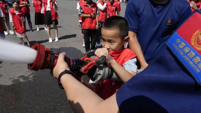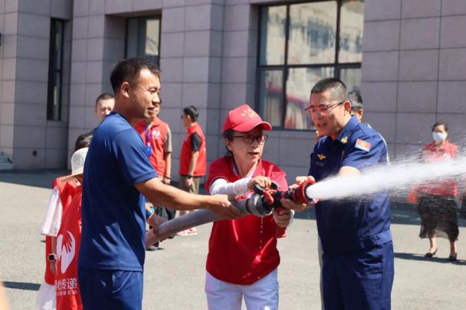 活動(dòng)中,宣傳人員帶領(lǐng)大家參觀營區(qū)文化建設(shè)、消防員宿舍等功能庫室,介紹了各類消防車用途、特點(diǎn),以及隨車器材性能和使用方法。隨后,參觀者在消防救援人員指導(dǎo)下,體驗(yàn)穿戴滅火防護(hù)服、水槍打水、登消防車等活動(dòng),感受“火焰藍(lán)”魅力。最后,綏化市青年志愿者服務(wù)隊(duì)給消防救援人員送上夏日解暑西瓜,祝愿消防員出警平安。