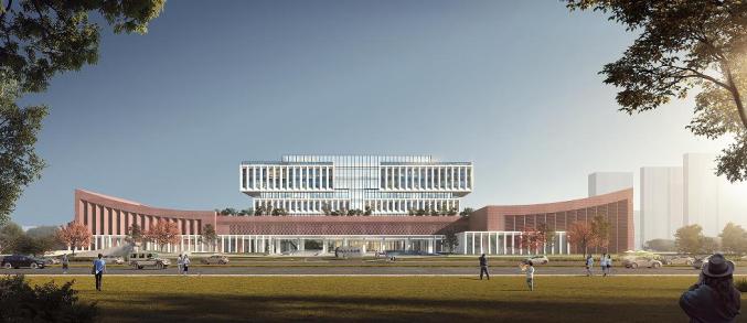 該項(xiàng)目地處運(yùn)河新城,設(shè)計(jì)汲取“世界水橋 + 通衢運(yùn)河”和“江淮水閘 + 兩岸河堤”的基礎(chǔ)元素,營(yíng)造出“一條大河波浪寬,風(fēng)吹稻花香兩岸”的設(shè)計(jì)意境。以“運(yùn)河之舟”承載文化記憶,“科技之帆”隱喻創(chuàng)新動(dòng)能,“創(chuàng)新之翼”昭示時(shí)代騰躍,三者交融凝練為設(shè)計(jì)核心理念。建筑輪廓抽象自“世界水橋的拱券形態(tài)”與“江淮水閘的層疊肌理”,以流線型體量呼應(yīng)運(yùn)河的磅礴與秀美,塑造出如雕塑般力與美共生的建筑。
