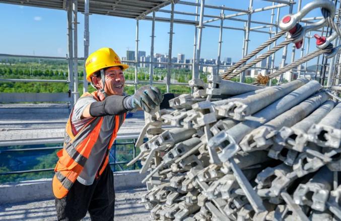 建設(shè)現(xiàn)場(chǎng),工人們堅(jiān)守崗位,加緊施工,塔吊司機(jī)也認(rèn)真作業(yè),全力保障項(xiàng)目建設(shè)進(jìn)度。