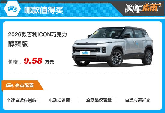 因此,對于2026款吉利ICON巧克力的購買建議,重點推薦售價9.58萬元的醇臻版,消費者購買時可優(yōu)先考慮。