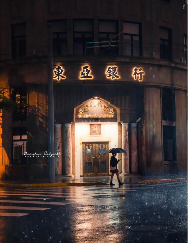 相比于平日里人潮涌動的外灘,下雨天的外灘似乎更具故事感。撐著一把雨傘走在街頭,獨特的氛圍、潮濕的空氣,仿佛讓人進入了一部老電影。